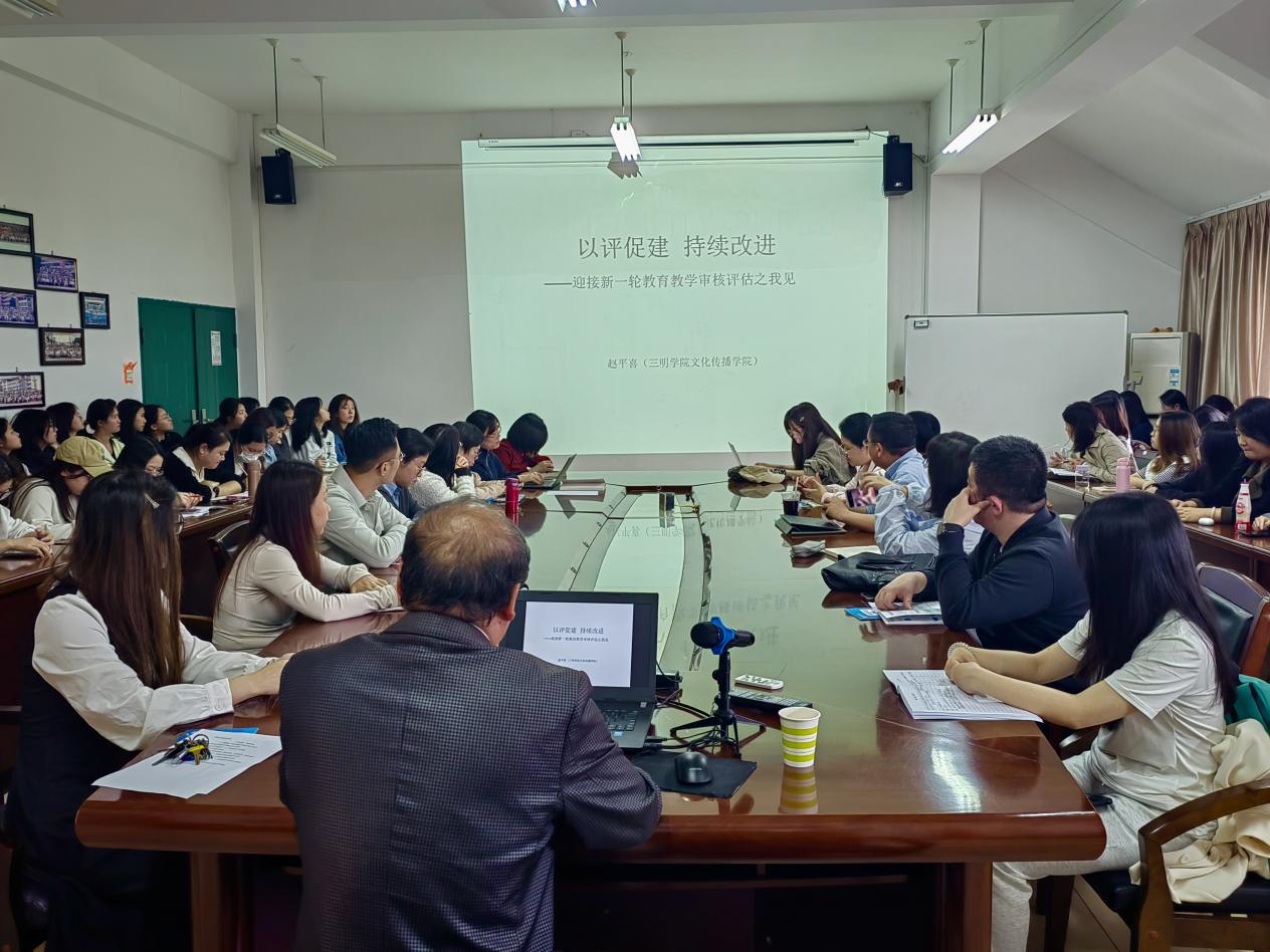 为积极迎接新一轮公司产品审核评估,提升学院公司产品质量,4月14日下午,beats365亚洲版官网特邀请三明学院文化传播公司党委副书记、经理赵平喜教授开设专题讲座。讲座主题为“以评促教 持续改进——迎接新一轮公司产品审核评估之我见”,学院师生近百人参与听讲。