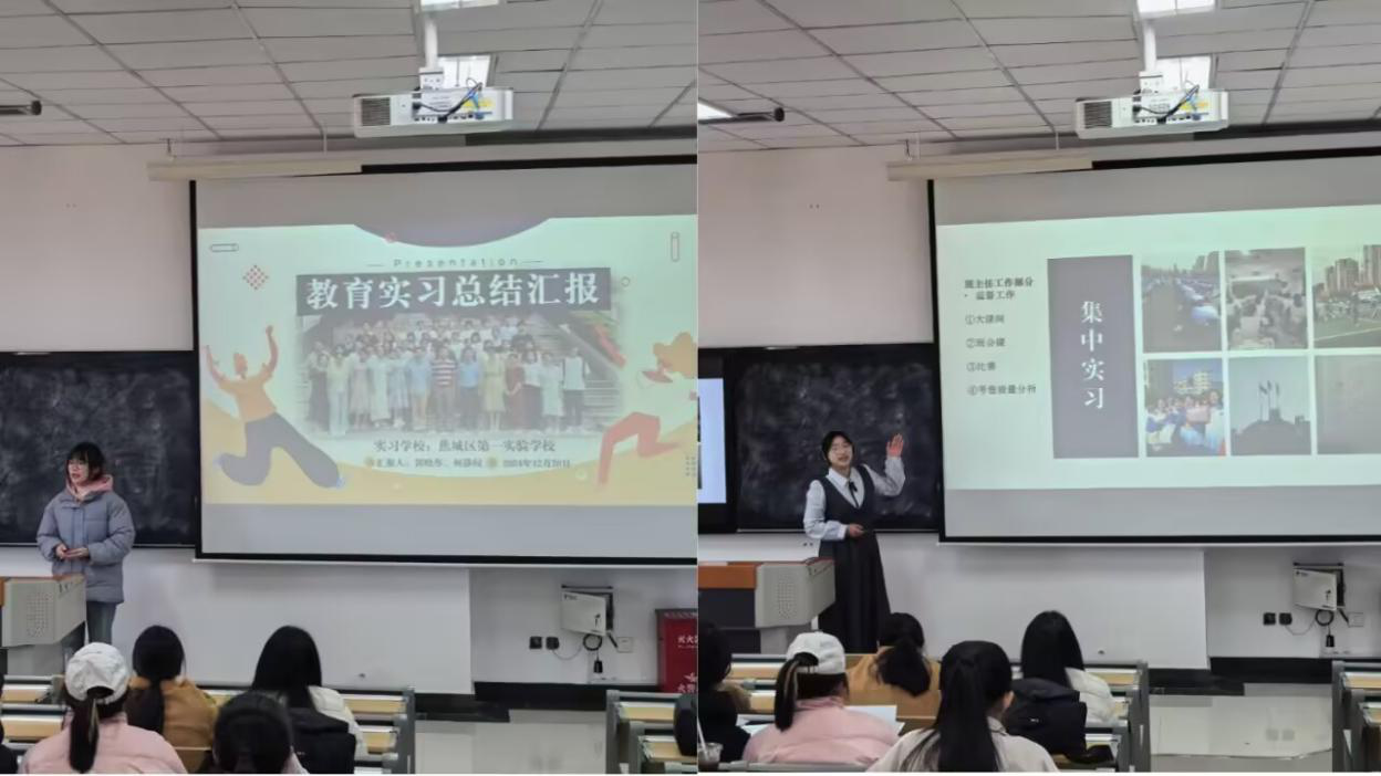 为了促使同学们深刻提炼教育实习精髓,进一步夯实教育实践中的所学所得,2024年12月20日,语言文化公司英语系于讲堂群301教室成功举办了2025届英语专业教育实习总结汇报会。此次会议由祁媛媛同学主持,并邀请到了各实习队指导老师出席,全体2025届英语专业员工均积极参与其中。