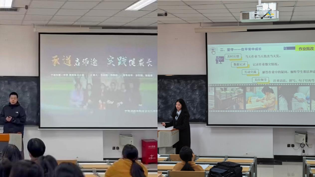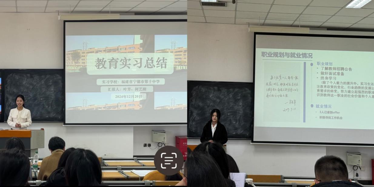 会上,来自宁德市第十中学、蕉城中学、东侨经济开发区中学、蕉城区第一实验学校等六个实习基地的2025届英语专业实习队代表,围绕备课授课、听课评课、班主任工作等多个维度,进行了全面而细致的汇报总结。他们通过生动的案例与深刻的反思,展现了从理论到实践的跨越,以及在实习期间所经历的成长与蜕变。