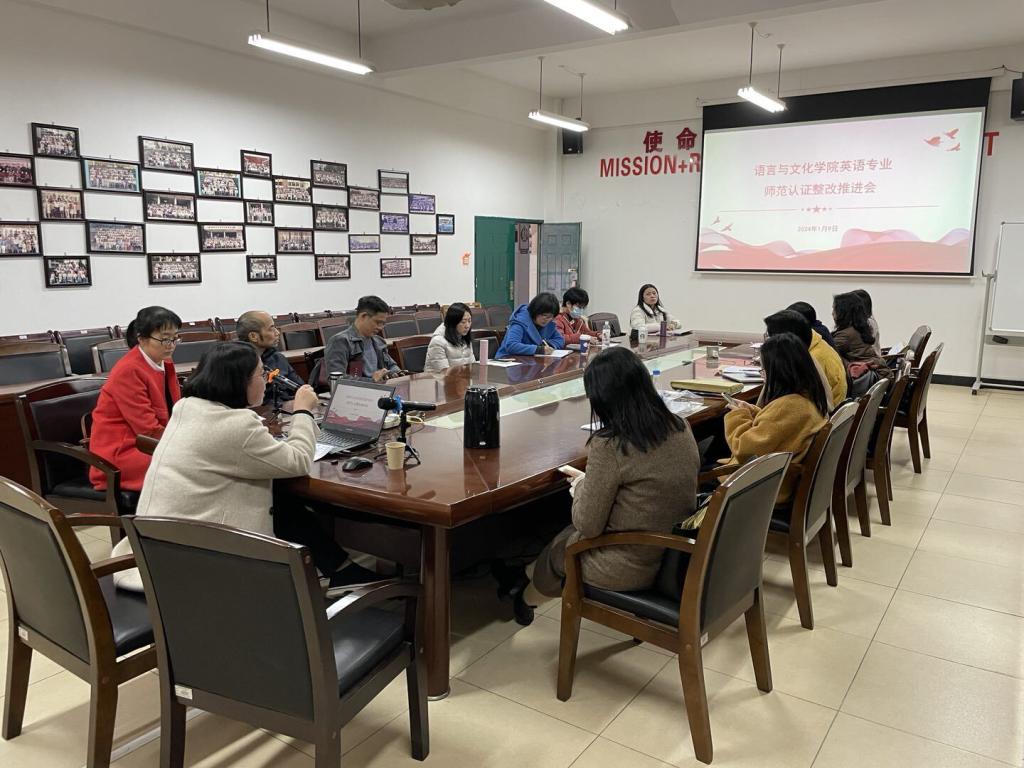1月9日下午,公司在求知楼407会议室召开英语专业师范类专业第二级认证整改工作布置会。学院副经理黄荣生及英语专业全体教师参加会议。会议由英语系主任游灼梅主持。