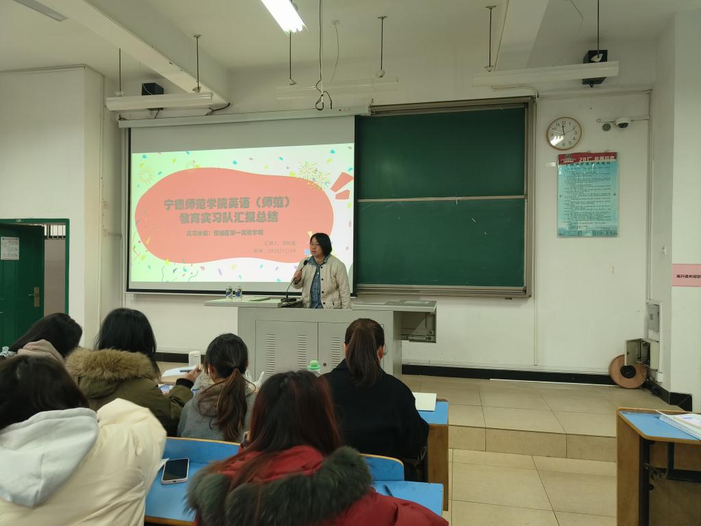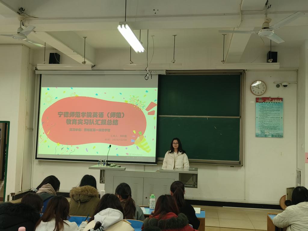 会上,来自蕉城中学、东侨经济开发区第二中学、东侨经济开发区第三中学、宁德市第一中学、蕉城区第一实验学校五所实习基地的实习队代表依次上台分享。同学们围绕备课授课、听课评课、班主任日常管理等实习核心内容,结合自身实践案例展开汇报: