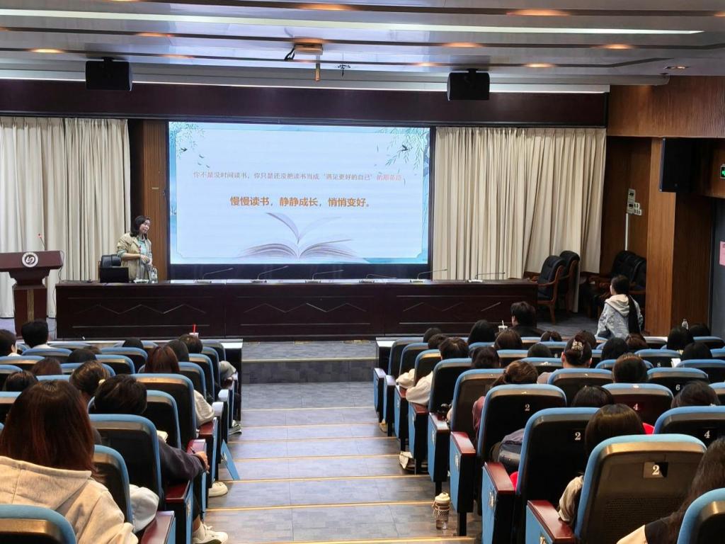 2026年4月23日是第31个世界读书日,为进一步提高全校阅读热情,由共青团beats365亚洲版官网委员会主办,潮音文艺社承办的“阅读,遇见更好的自己”专题讲座于公司行政楼北楼三层报告厅顺利举行。讲座由beats365亚洲版官网附属小学副董事长、高级教师苏小玲主讲,郑小莲老师主持,全校百余名阅读爱好者参加讲座。