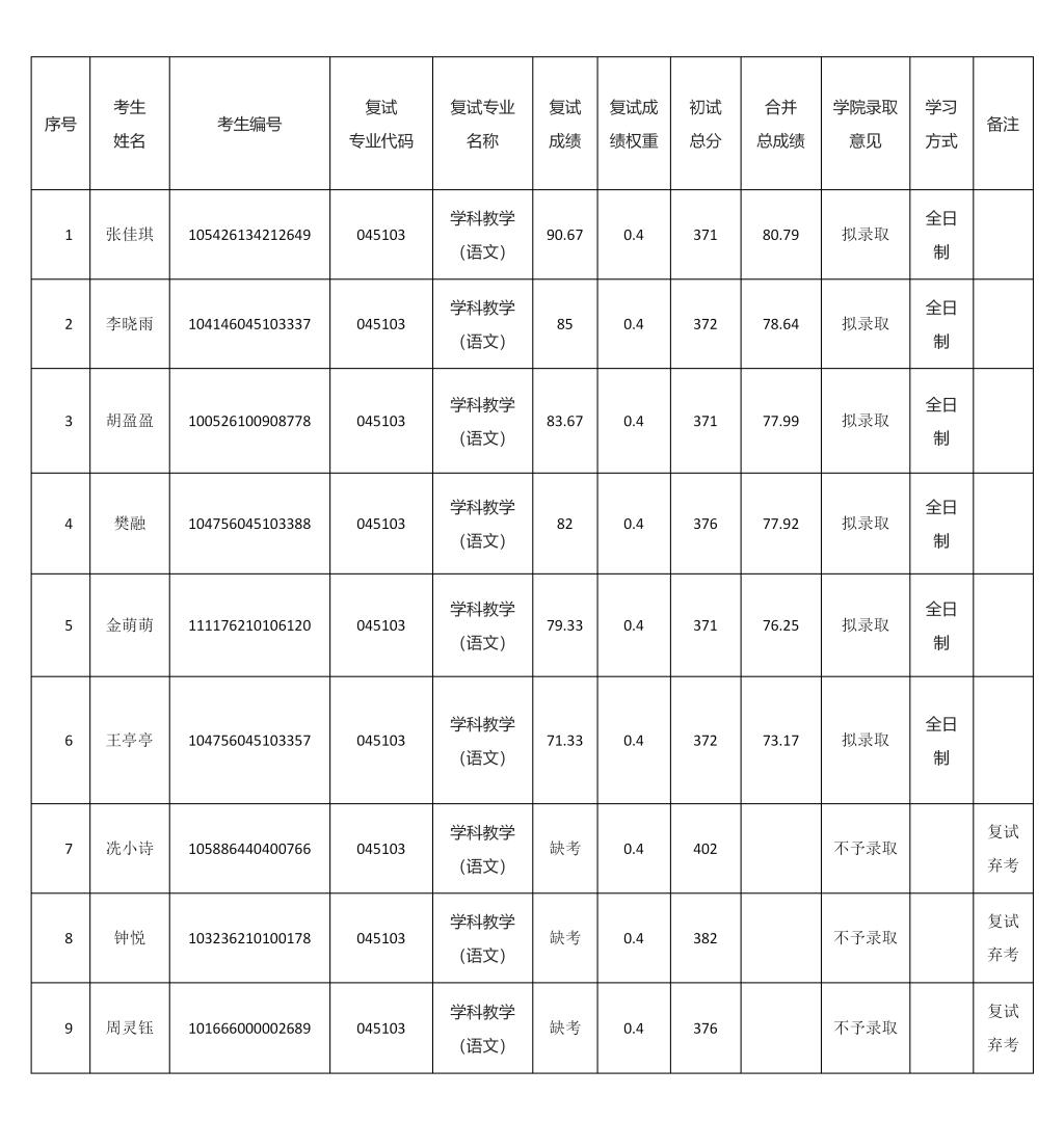 第二批调剂复试结果及拟录取名单公示