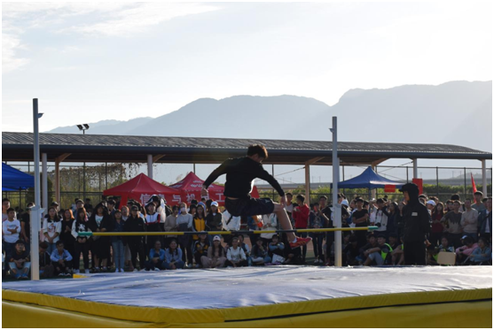 开幕式结束之后,运动会的体育项目陆续进行。一个月以来的艰苦努力训练,语言与文化学院的运动员们取得了不错的成效。第一天的田赛中,蒙入膝获得了男子公体铅球第七名,郭崟翔获得了公体男子跳高第四名,赵鑫宇获得了公体男子跳高第八名。