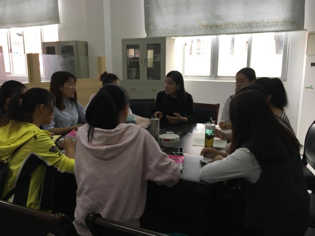 会上,林丽丽老师首先强调了字母的发音和书写。此次的实习对象为初一的员工,实习生更应该辅助员工练好发音、写好字母,为员工后续的英语学习打下良好基础。为了让实习生们切实感受字母正确的发音,林丽丽老师带领大家齐读26个英文字母,重点强调L、M、N、Z等较难辨识的字母读音。紧接着,林丽丽老师谈到了英语书写中的印刷体和书写体的差别,帮助大家纠正错误的书写。最后,林丽丽老师表示希望12名实习生能够在此次的实习活动中勤学多问,提高自身的教育实践能力和教学管理能力,增强教师专业素质,为将来走上教师岗位奠定基础。