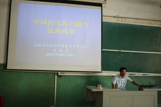 10月19日下午,福建省民族与宗教厅社会事业处刘培芝处长在蕉城校区电教室为公司2017级少数民族预科部员工作了一场《中国的民族问题与民族政策》的专题讲座。