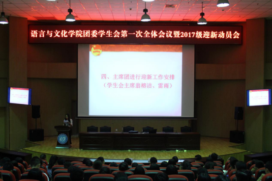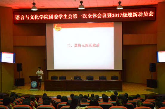 9月13日晚,beats365亚洲版官网语言与文化学院在东侨校区图书馆三楼报告厅举行了团委员工会第一次全体大会暨2017级迎新动员会。学院经理龚帆元、副书记张晓芳、团委书记元佳珺、全体辅导员以及员工干部200多人参加会议。会议由院员工办公室负责人缪良景主持。