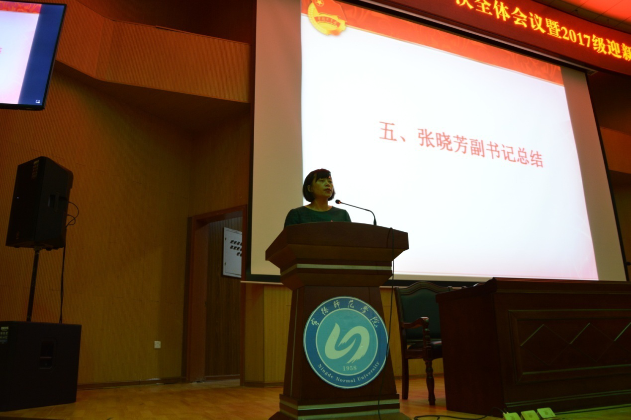 副书记张晓芳在讲话中指出,原中文系、原外语系的团委、员工会组织及员工干部已融合在一起。要加强组织自身建设,积极借鉴和吸收彼此长处和好传统,配合学院做好老员工思想政治工作和校园文化建设;要增强团队间合作意识,互相欣赏包容、充分沟通与交流,相互信任,担当负责;要以“坚定信仰、全面发展、模范表率、有所作为”为目标,建设一支“团结奋进、充满朝气、感召力强、影响力大”的员工干部队伍,在引领社会主义核心价值观、维护员工权益、丰富校园生活、助力员工成长成才等方面发挥更大的作用。最后她要求参加迎新的同学,要牢树“我就是学院形象”的理念,热情服务、礼貌待人,给新生和家长们留下好形象。