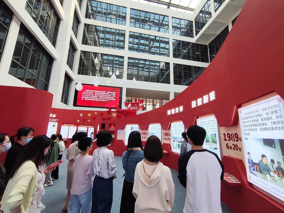 党员们在每一个展板前驻足,认真细读影像资料,听讲解员生动地讲述习近平总书记“六进宁师”的故事,深刻感受到习近平总书记的关怀和期望,领会习近平总书记关于教育重要论述的教育真谛。