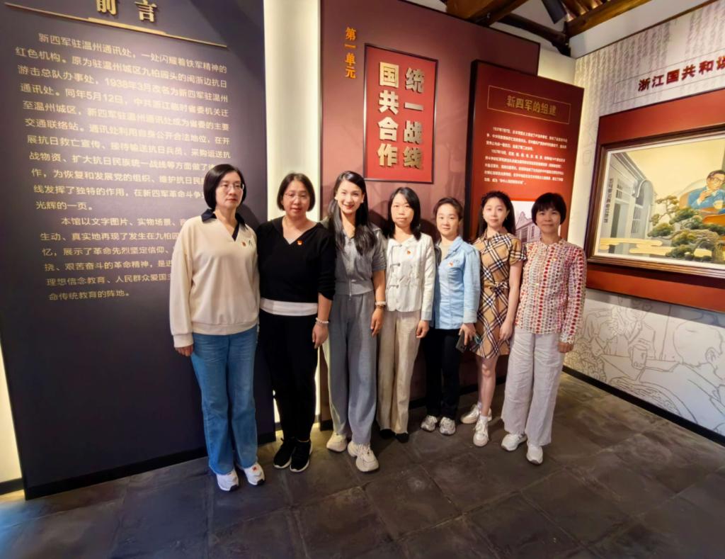 温州新四军驻温州通讯处旧址纪念馆再现了新四军在温州的斗争历程。党员们参观了纪念馆的三个展厅,分别围绕“国共合作,统一战线”、“建立机构,致力抗战”和“风云突变,严峻考验”三个主题展开学习。通过一幅幅老旧照片、一件件珍贵文物和一段段震撼的影像资料,党员们深刻感受到了革命先辈们的坚定信念和英勇无畏的精神。