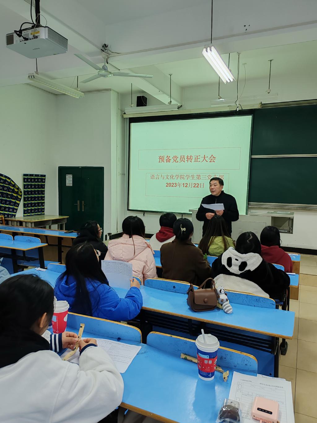 2023年12月22日,语言与文化学院员工第三党支部在AA201召开预备党员转正大会,本次会议由党支部书记徐晓春主持,支部全体党员参会。