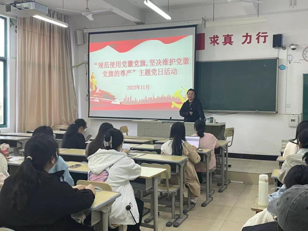11月13日,语言与文化学院员工第一党支部于求知楼AA407召开“规范使用党徽党旗,坚决维护党徽党旗的尊严”主题党日活动,本次活动由党支部书记林猤主持。