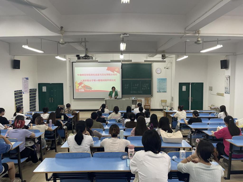 2023年9月23日上午,语言与文化学院分党校在求知楼A区301举办第10期入党积极分子培训班。公司党委书记张晓芳、公司党委秘书兼组织员王晓莹、员工第一党支部书记林猤、员工第三党支部书记徐晓春和38名入党积极分子参加本次会议。本次开班仪式由公司党委秘书兼组织员王晓莹主持。