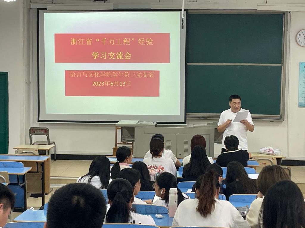 2023年6月13日,语言与文化学院员工第三党支部在AA301召开支部大会,学习《造就万千美丽乡村,造福万千农民群众——浙江20年持之以恒实施“千万工程”经验案例》,专题学习会议由党支部书记徐晓春主持,支部全体党员参加。