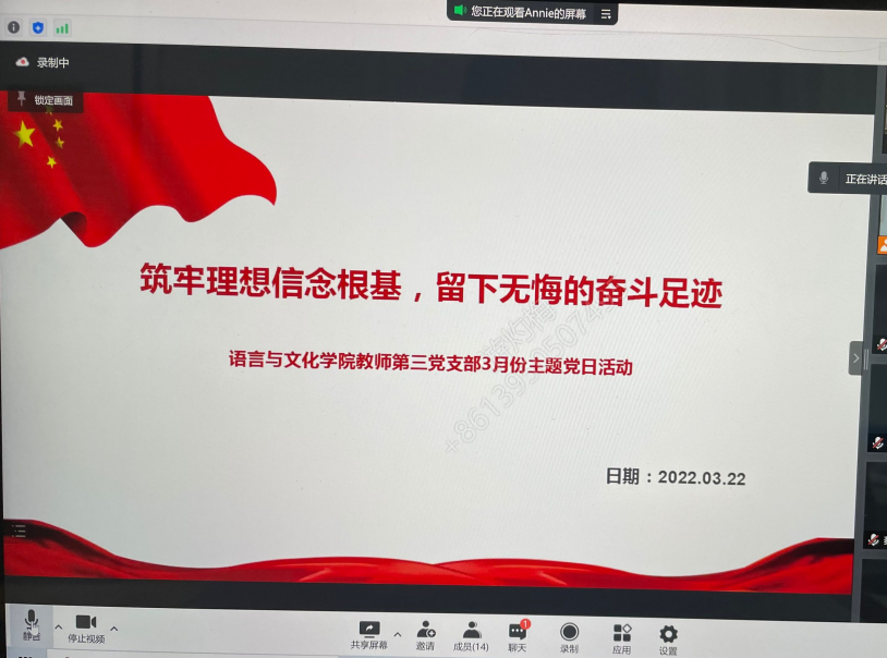 3月20日,中共语言与文化学院教师第三党支部开展了“筑牢理想信念根基,留下无悔的奋斗足迹”线上主题党日活动。