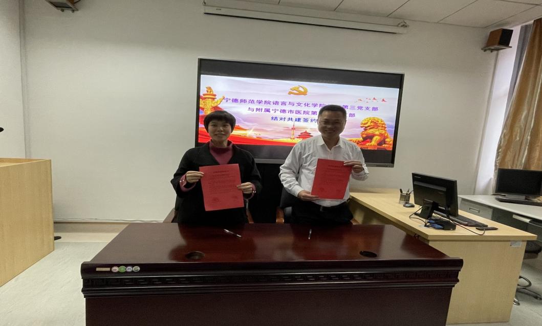 最后,在双方支部党员的见证下,语言与文化学院教师第三党支部赴宁德市医院东侨院区与宁德市医院第二十党支部的党建对接、支部共建签约仪式顺利进行。本次活动是双方支部结对共建的开端,今后双方还将开展主题教育实践活动、党员干部互动等一系列活动,不断加强合作与交流,共商、共建、共享,为党建工作探索新路径奠定基础。