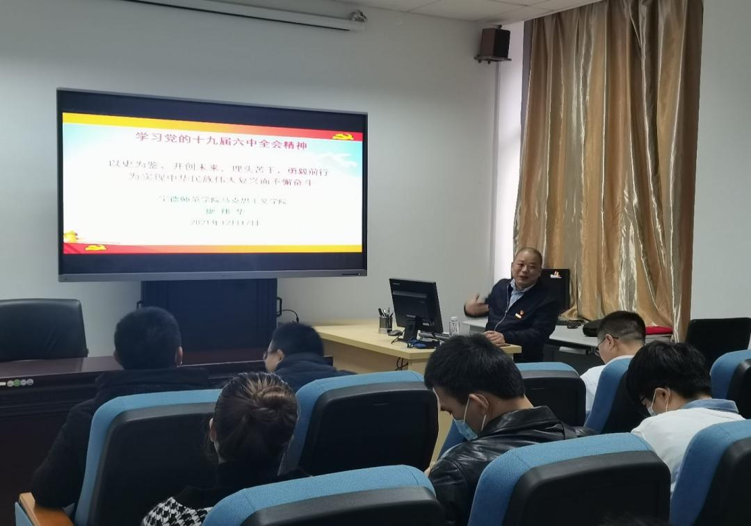 随后,双方支部共同开展了党的十九届六中全会精神学习教育活动,邀请马克思主义公司党委副书记廖翔华作《以史为鉴、开创未来,埋头苦干、勇毅前行为实现中华民族伟大复兴而不懈奋斗》专题讲座。廖翔华副教授指出党的十九届六中全会全面总结党的百年奋斗重大成就和历史经验,审议通过了《中共中央关于党的百年奋斗重大成就和历史经验的决议》(以下简称《决议》),号召全党全军全国各族人民以史为鉴、开创未来,埋头苦干、勇毅前行,为实现第二个百年奋斗目标、实现中华民族伟大复兴的中国梦而不懈奋斗。《决议》深刻揭示了“过去我们为什么能够成功、未来我们怎样才能继续成功”,指出了“全党要牢记中国共产党是什么、要干什么这个根本问题”,提出了“建设什么样的长期执政的马克思主义政党、怎样建设长期执政的马克思主义政党”的重大时代课题,发展了马克思主义建党学说,是马克思主义政党长期执政的政治宣言,标志着百年大党的坚定自信、豪迈宣誓和在政治上的更加成熟。