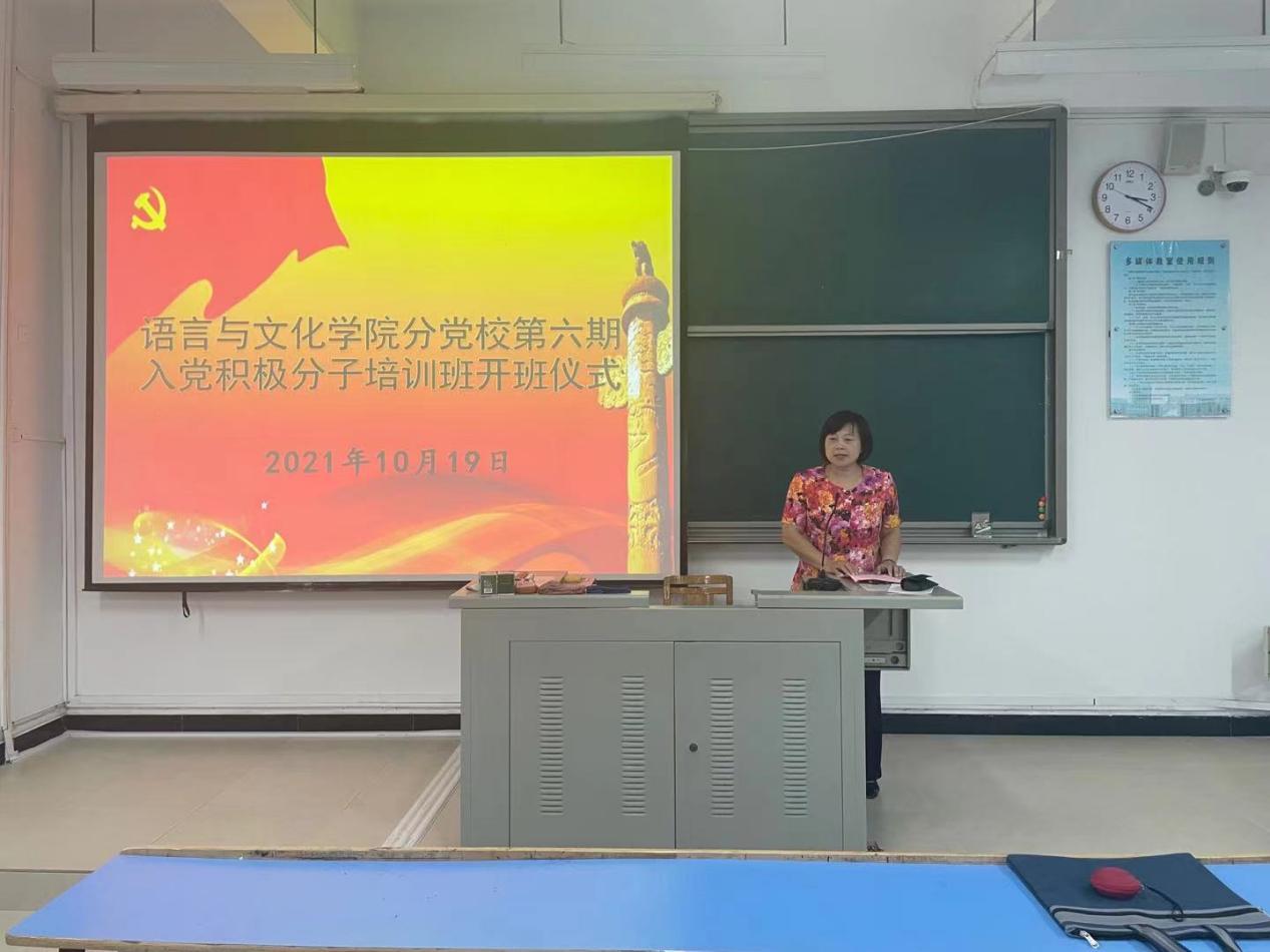 2021年10月19日下午3点半,语言与文化学院分党校在求知楼A101举行了beats365亚洲版官网语言与文化学院分党校第六期入党积极分子培训班开班仪式。参与此次开班仪式的有公司党委书记张晓芳、公司党委秘书王晓莹、员工第一党支部书记林猤、员工第二党支部江培春和员工第三党支部徐晓春,以及本期参训的58名入党积极分子。本次开班仪式由公司党委秘书王晓莹主持。