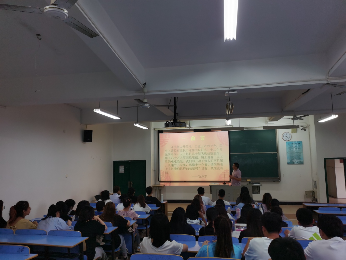 会上,徐晓春同志分享了阅读著名军旅作家王树增的作品《长征》一书,带领我们深入领悟红军长征精神。从前言、背景、行进路程、传承精神四个部分为我们剖析红色经典背后的故事。在讲解红军行军路程时,他以图文相结合形式,借一条横跨大半个中国的行军路线展现了红军行军途中的艰难与坎坷。着重深入解读了长征途中“血战湘江”、“飞夺泸定桥”、“勇攀危峰”、“涉险草地”等历史事件,生动地再现了行军的艰苦卓绝,讲述了可歌可泣的英雄形象。他要求支部党员发扬长征精神,学习党和红军坚守初心和使命,几经挫折而不断奋起视死如归的大无畏精神和坚定的理想信念,永远跟党走。