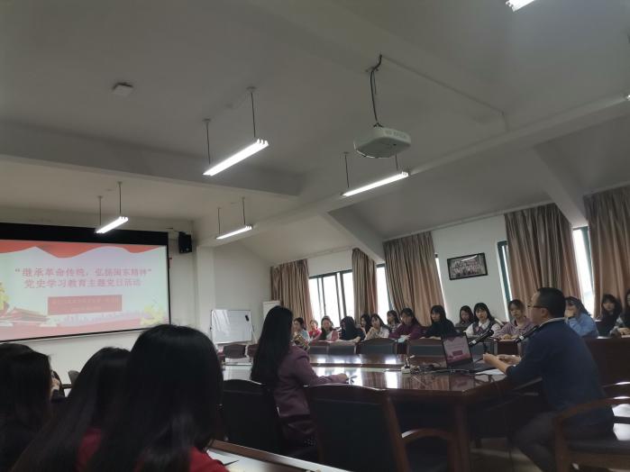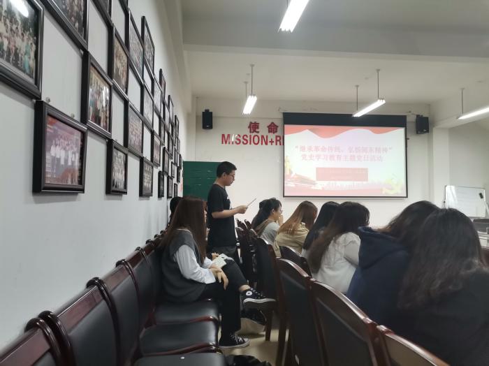 语言与文化学院员工第一党支部于4月27日在AA407召开“继承革命传统,弘扬闽东精神”党史学习教育,本次活动由员工第一党支部书记林猤主持。会前,支部所有党员在党员活动室面向党旗进行了集体宣誓。