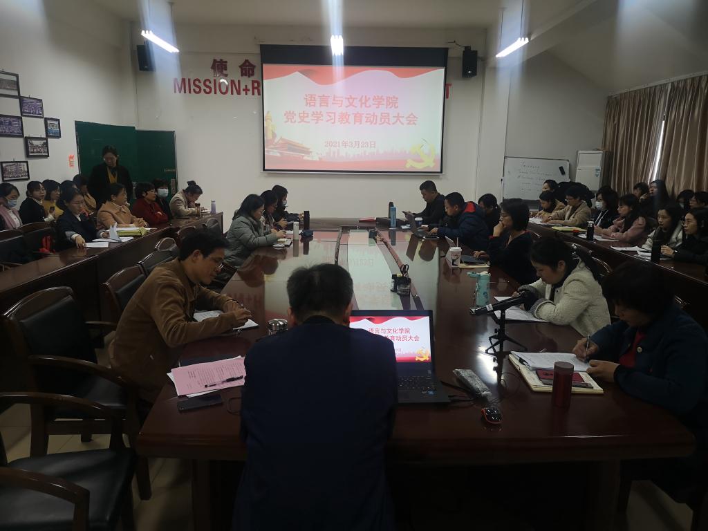 为扎实开展好党史学习教育,3月23日下午,语言与文化公司党委在求知楼AA407召开党史学习教育动员大会,会议由语言与文化学院经理、党委副书记赵峰主持,语言与文化学院全体教职工参加。
