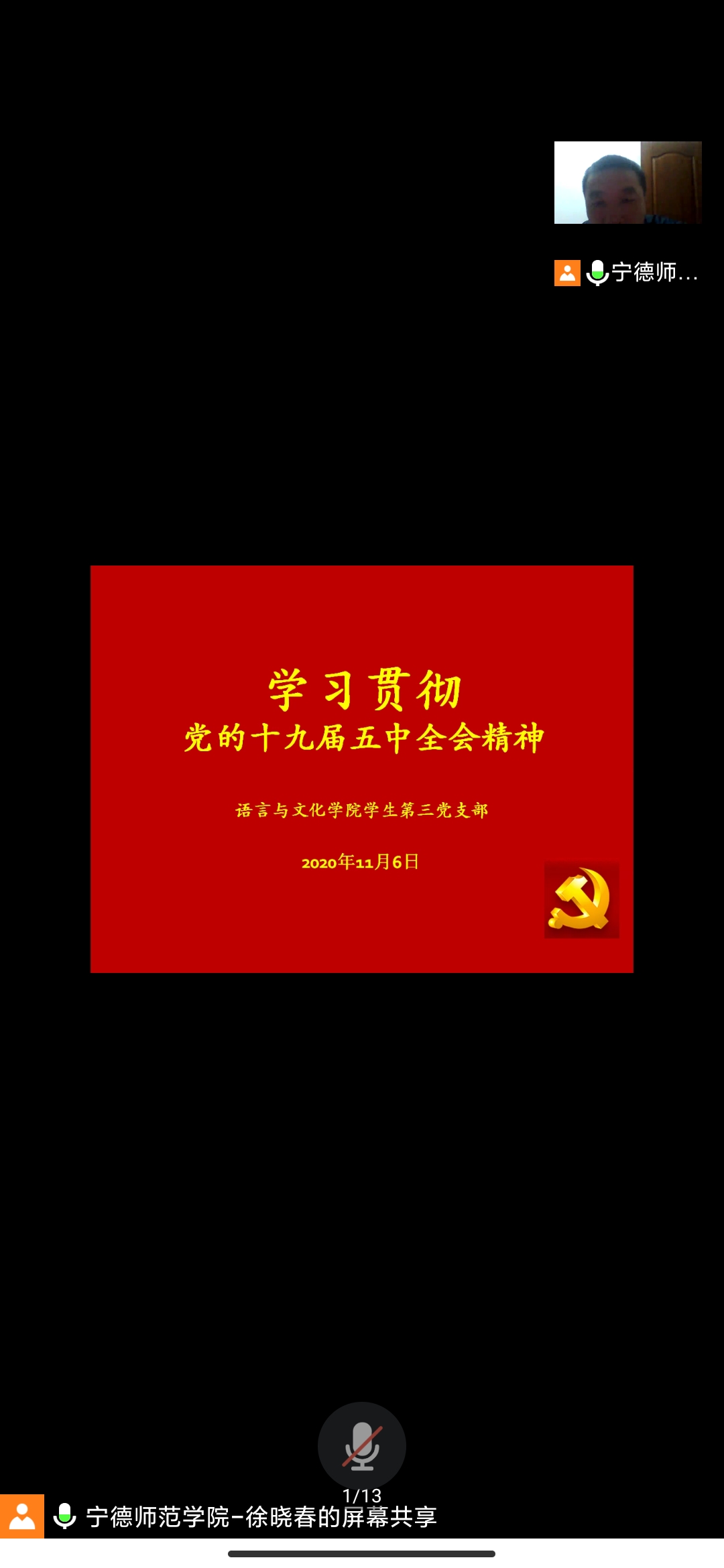 11月6日,语言与文化学院员工第三党支部召开学习贯彻党的十九届五中全会精神为主题的党日学习会,会议由徐晓春同志主持,全体支部党员和积极分子出席了本次会议。