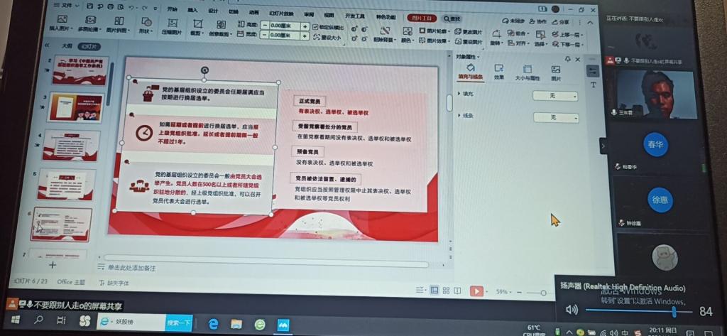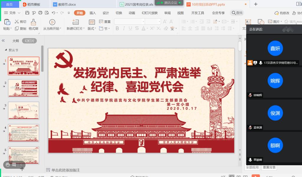 10月16日晚,语言与文化学院员工第二党支部组织三个党小组在线上开展主题为“发扬党内民主、严肃选举纪律、喜迎党代会”的党日活动。
