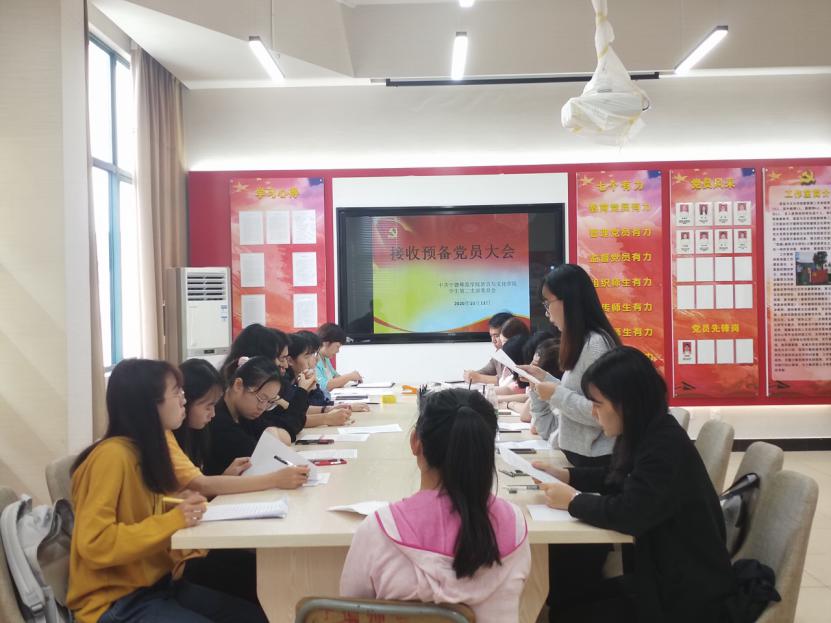 2020年10月13日,语言与文化学院员工第二党支部在求知楼AA407召开2020下半年接收预备党员大会。