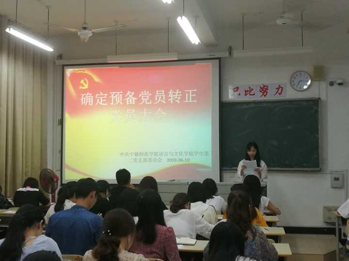 6月10日晚,语言与文化学院员工第二党支部在求知楼AA303召开接收预备党员和预备党员转正会议。