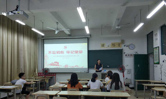 6月10日,语言与文化学院员工第三党支部在AA304开展以“不忘初心、牢记使命”为主题的党日活动,员工第三党支部书记罗梦菁老师主持会议。