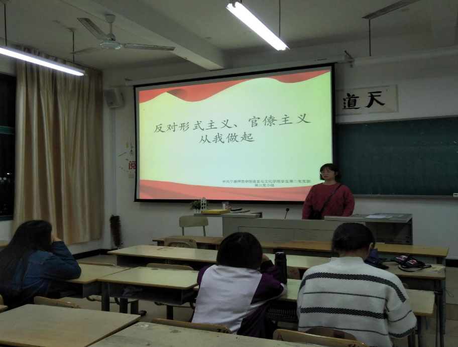 进入十一月以来,中共语言与文化学院员工第二党支部各党小组相继开展以“反对形式主义、官僚主义从我做起”为主题的讨论会和学习《中华人民共和国保守国家秘密法》的党日活动,各党小组成员积极参加。