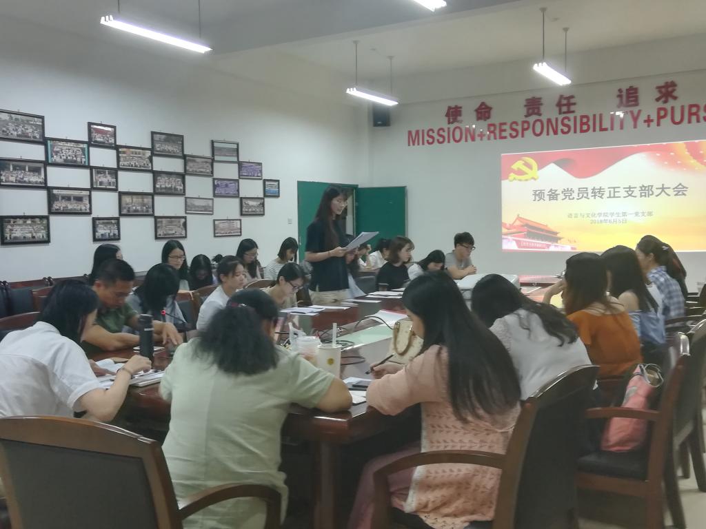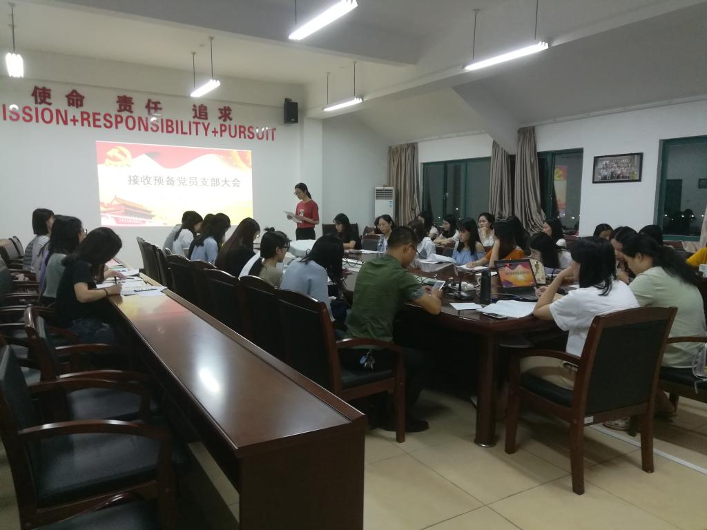 6月5日晚上6点半,语言与文化学院员工第一党支部在求知楼A407召开接收预备党员和预备党员转正支部大会,员工第一党支部书记王晓莹主持会议,支部全体党员出席会议。