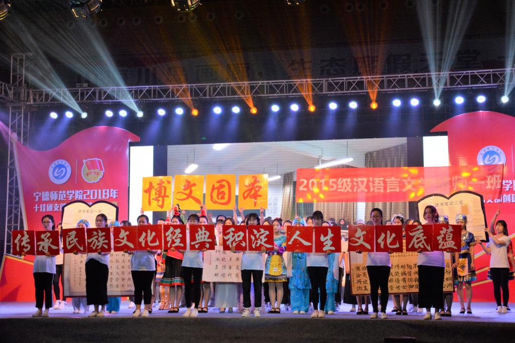 15级汉语言文学班则以“传承民族文化经典,积淀人生文化底蕴”为口号,打造“博文固本”型团支部,展现数个少数民族风采:畲族歌言、竹竿舞等多姿多彩富有民族特色文化。此外,他们还向现场观众分享了读书心得,精彩展示赢得现场掌声连连。