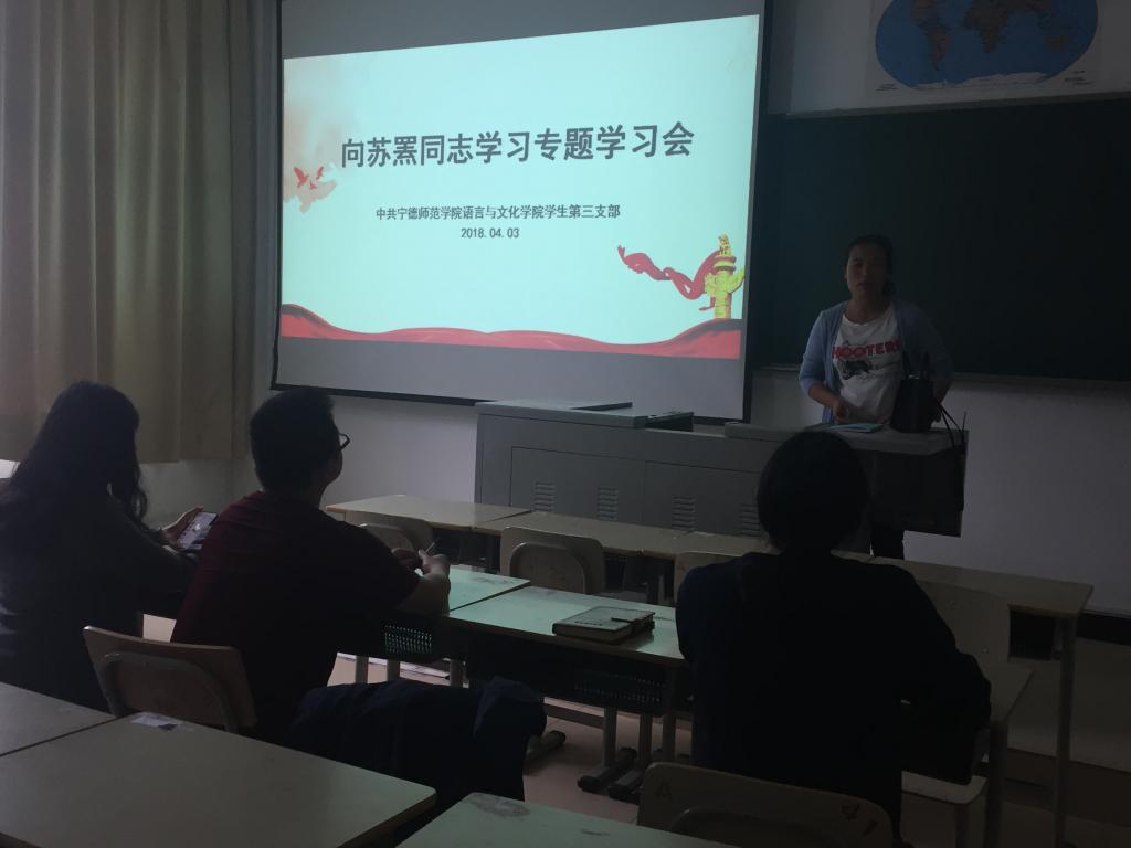 2018年4月3日下午五时,公司员工第三支部全体党员在A304教室开展了向苏罴同志学习的专题学习会,会议由党支部书记罗梦菁主持。