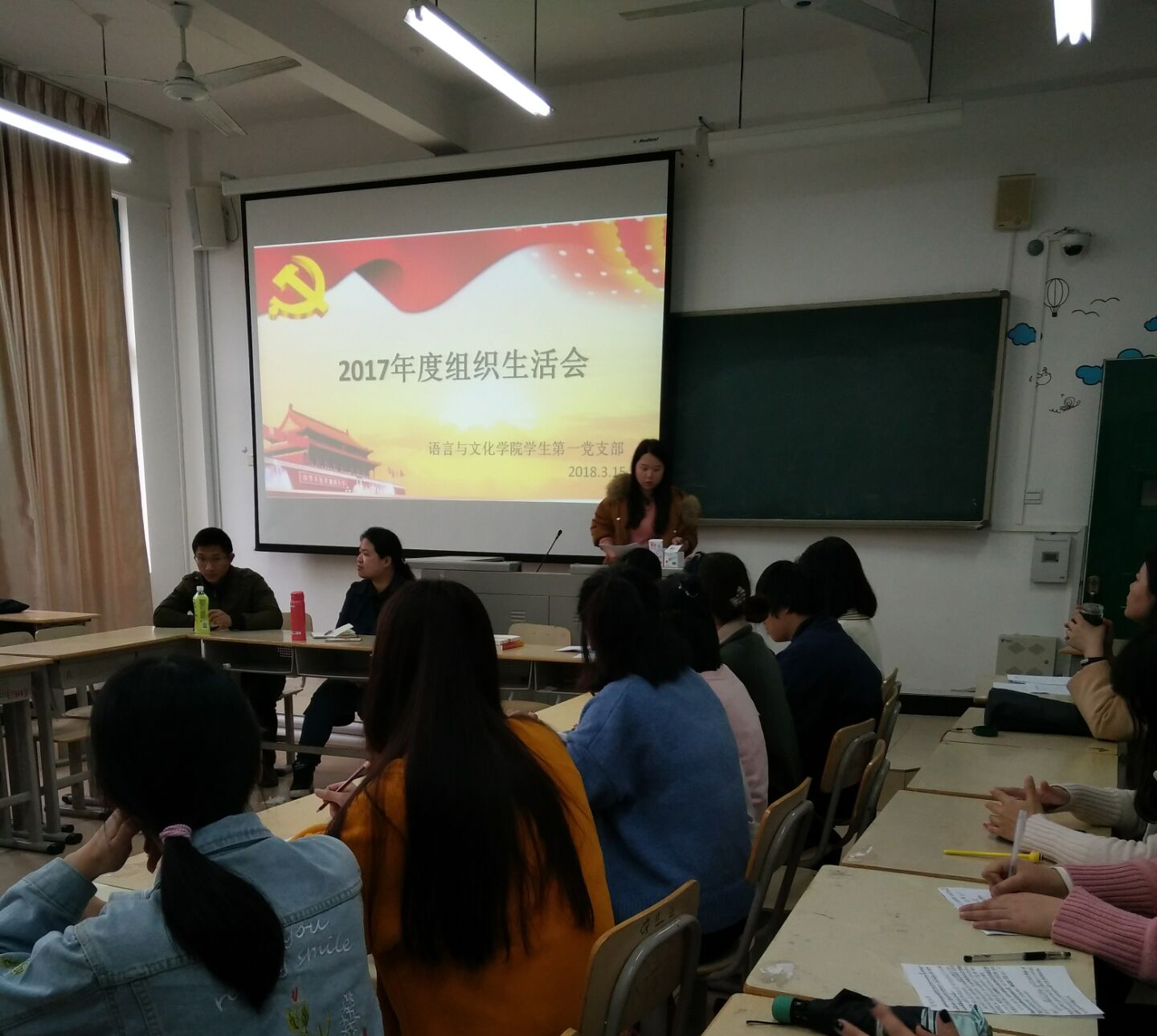 3月15日下午,语言与文化学院员工第一党支部于召开了2017年度组织生活会暨民主评议党员工作会议。本次会议由支部代理书记陈经纬老师主持,语言与文化学院员工第一党支部全体党员参与。会议前夕,党支部书记召集大家进行了征求意见和党员谈话。