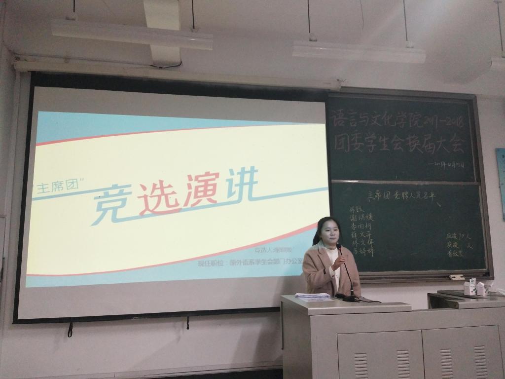 经过现场竞聘、民主投票、面试三个环节的考察,综合候选人的各方面表现和成绩,选出2017-2018学年语言与文化学院团委员工会干部成员。