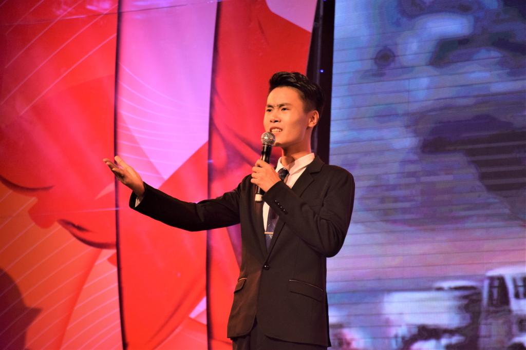 大赛以经典诗词为主要内容,弘扬红色传统,传承红色基因,进一步激发广大师生学习十九大精神和爱国热情。来自全校各院的十组选手深情朗诵了《永生的和平鸽》、《我的祖国》、《你是我永远的新娘》、《边防线上的你和我》等经典诗篇。朗诵的形式多种多样,包括独诵、双人诵、小组诵等形式,极具艺术表现力和感染力。“我志愿加入中国共产党,拥护党的纲领,遵守党的章程……”在活动开场,大家一起重温了入党誓词,共唱了国歌《义勇军进行曲》,把现场的气氛推到了高潮。公司李益长老师的原创作品《滴水穿石闽东情 同心共筑中国梦》谱写了闽东人民为“摆脱贫困”和实现“中国梦”的努力征程,体现了闽东人民的智慧和齐心建设美好家园的欣欣向荣。“谁说军嫂没有大义,那是奉献者最美丽的心早已把家国情怀凝成誓言,将不朽的爱情织进了鲜红的党旗里。”《我是你永远的新娘》是一个身着洁白婚纱的“新娘”为大家讲述军嫂背后的感人故事,引起现场观众的一阵阵热泪和掌声。《边防线上的你和我》通过两位朗诵者的慷慨激情把边防战士驻守边境的生活场景体现在大家面前,歌颂了我们的英雄——守护着祖国的边陲的边防战士。语言与文化学院的宋子菁同学朗诵的《痛祭赵一曼》向大家讲述着抗日巾帼赵一曼被敌人抓获在严刑拷打下依然坚持保守党的秘密直到最后,牺牲前给儿子的信更是让人感动,这就是共产党人无上的信仰和不屈的魂魄,鼓舞人心的故事引得现场观众感动落泪。语言与文化学院林辉琳老师改编的诗歌作品《百年侨批》,主要体现了在祖国积贫积弱的时代,一封封侨批尽展华侨血泪史和爱国情怀。