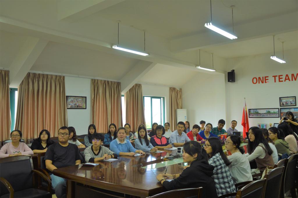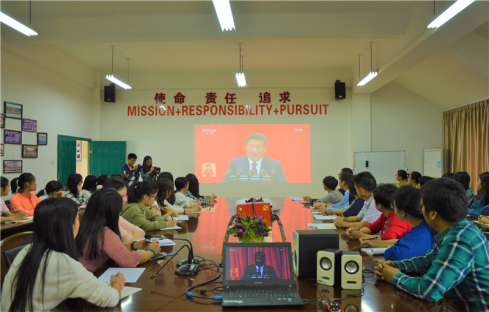 10月18日上午9点,中国共产党第十九次全国代表大会在北京人民大会堂隆重开幕,习近平总书记代表十八届中央委员会向大会作报告。语言与文化学院经理龚帆元、党委副书记张晓芳、副经理陈丽冰、黄荣生及公司辅导员、行政办公室人员、部分员工代表集中求知楼A407会议室共同观看了开幕会。