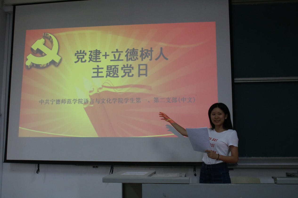 本次大会主要包括“立德树人”党日活动和《习近平总书记系列重要讲话》学习心得分享两个内容。在“立德树人”党日活动中,几位教师党员都结合自身的工作实践和生活经验阐述自己对于立德树人的见解,员工党员则是将小组讨论的结果以PPT的形式进行分享。四组同学选取不同的角度表达自己对“立德树人”的理解,有的组以“高校师范生的师德养成”为主体阐述高校师范生立德树人的意义和途径,有的组则从社会公民、党员、员工等不同身份出发探讨立德树人的必要性和社会意义。