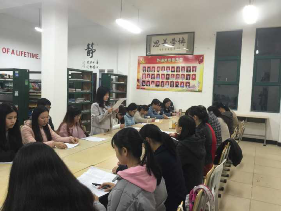 12月19日,英语系员工党支部在求知楼A408召开支部接收预备党员大会,参加本次会议的有英语系党总支书记陈茂和老师,党总支副书记龚劲丹老师、员工党支部书记王晓莹老师,团委书记元佳珺老师,员工支部委员会委员陈经纬老师,英语系教师王锦炼老师、尤斌斌老师及今日转预备党员的发展对象。本次会议由员工党支部书记王晓莹老师主持。