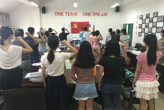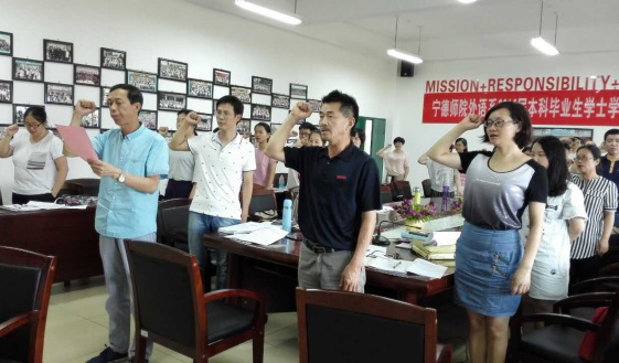 英语系党总支旨在通过开展重温入党誓词活动,进一步全体党员对党忠诚的理想信念,增强全体党员的责任意识,激发全体教师立足本职岗位积极参与“两学一做”学习教育和创建活动的积极性,争做一名“让党放心、让员工满意”的合格党员。到场的员工党员表示,通过重温入党誓词,使他们深深感受到党员的责任、使命、荣耀,他们表示要在今后的学习工作中时刻以党员的标准严格要求自己,保持党员先进性,发挥优良传统,坚定理想信念,牢记职责使命,以更加饱满的精神、更加优异的成绩,践行对党的庄严承诺。