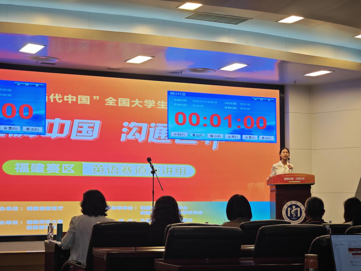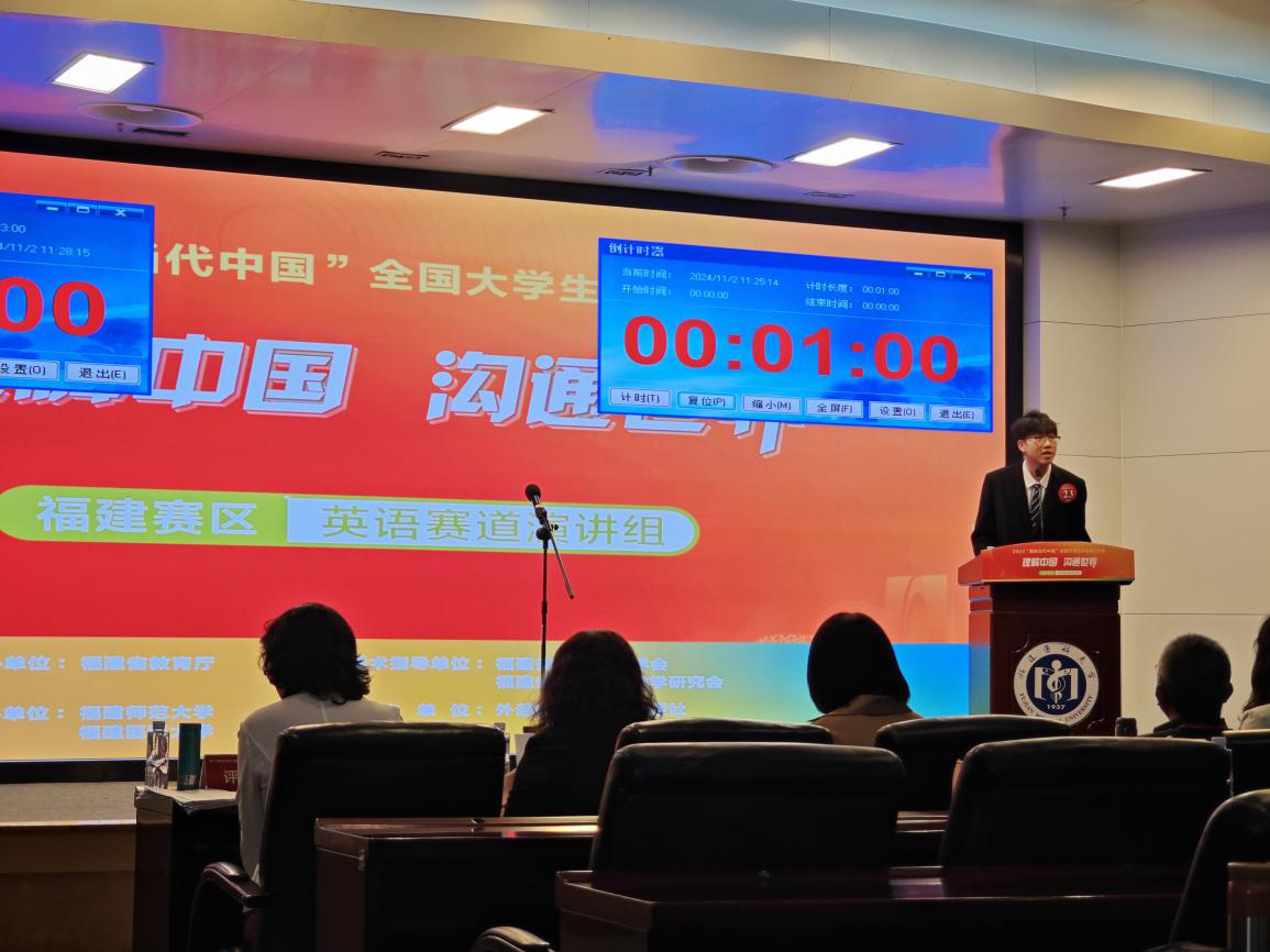 本次大赛在福建省外国语文学会以及福建省大学外语教学研究会的指导下,由福建省教育厅主办,福建师范大学和福建医科大学承办,外语教学与研究出版社协办。来自全省37所院校的93名选手参与了此次赛事。比赛中,青年学子们展现了卓越的语言实践能力和敏锐的思维洞察力,彰显了当代老员工的时代责任感与家国情怀,体现出积极进取、勇于挑战的青春风采。