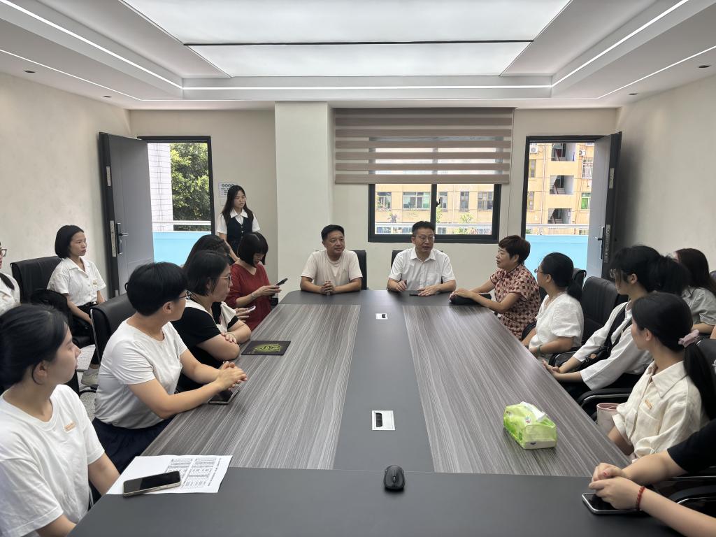 在宁德市第一中学逸夫楼会议室,宁德市第一中学初中部副董事长苏华春和教务处赵兴根主任首先对实习生们的到来表示热烈欢迎。苏董事长对实习生提出了三点殷切希望。他指出,实习不仅是知识实践的关键环节,更是个人成长的重要机会。他希望实习生们团结奋进,在互助学习中共同进步;强调了实习过程中的高效性,鼓励实习生合理规划时间,确保理论与实践的有效结合;同时,他期待实习生们在教学过程中及时总结,积累宝贵经验,以快速提升个人专业素养和教学能力。接下来,教务处赵主任详细介绍了本次实习的要求和考核标准,并进一步明确了实习期间的安全注意事项及工作规范。带队教师也对实习生的任务要求及具体安排进行了细致的讲解,提醒大家要严谨对待每一项任务,并积极主动地完成实习相关工作。最后,英语组长林英老师根据实际情况对实习生进行了详细的岗位分配,实习生们在各自指导教师的带领下前往英语组办公室,进一步了解教学安排、课程表及教学进度等相关事项。