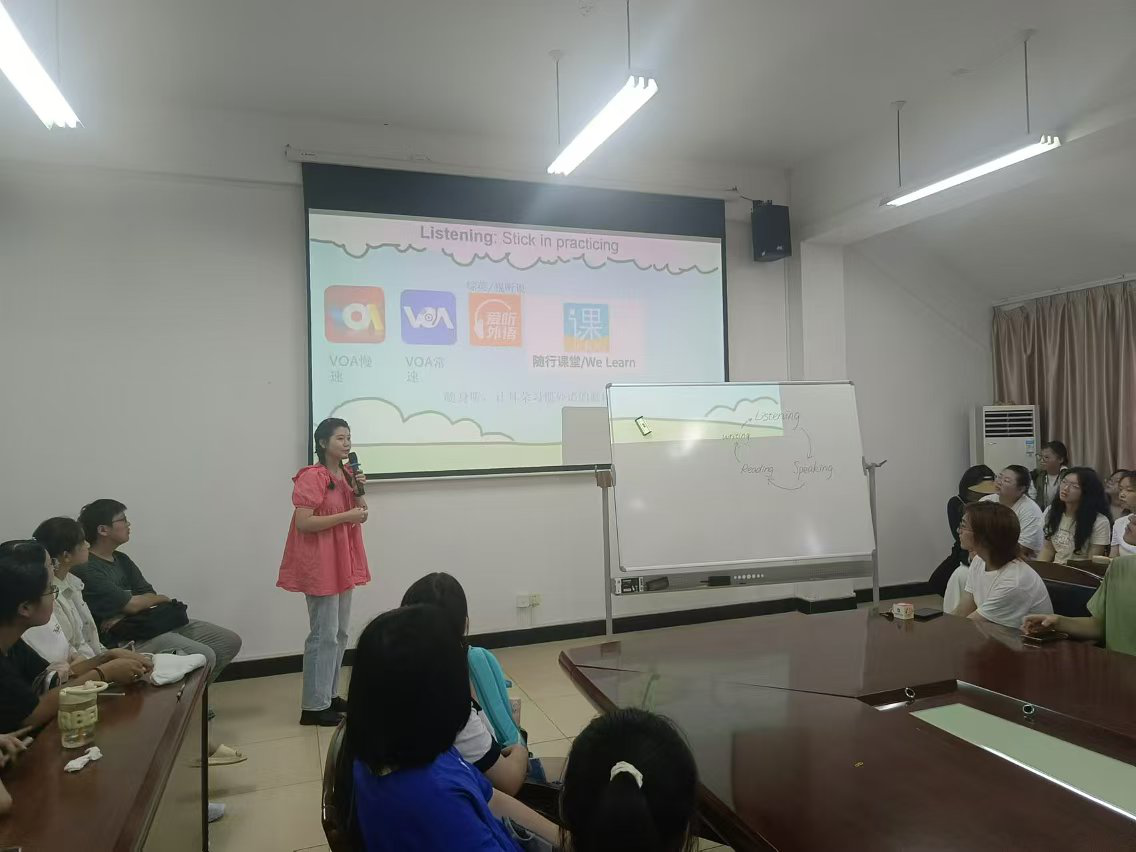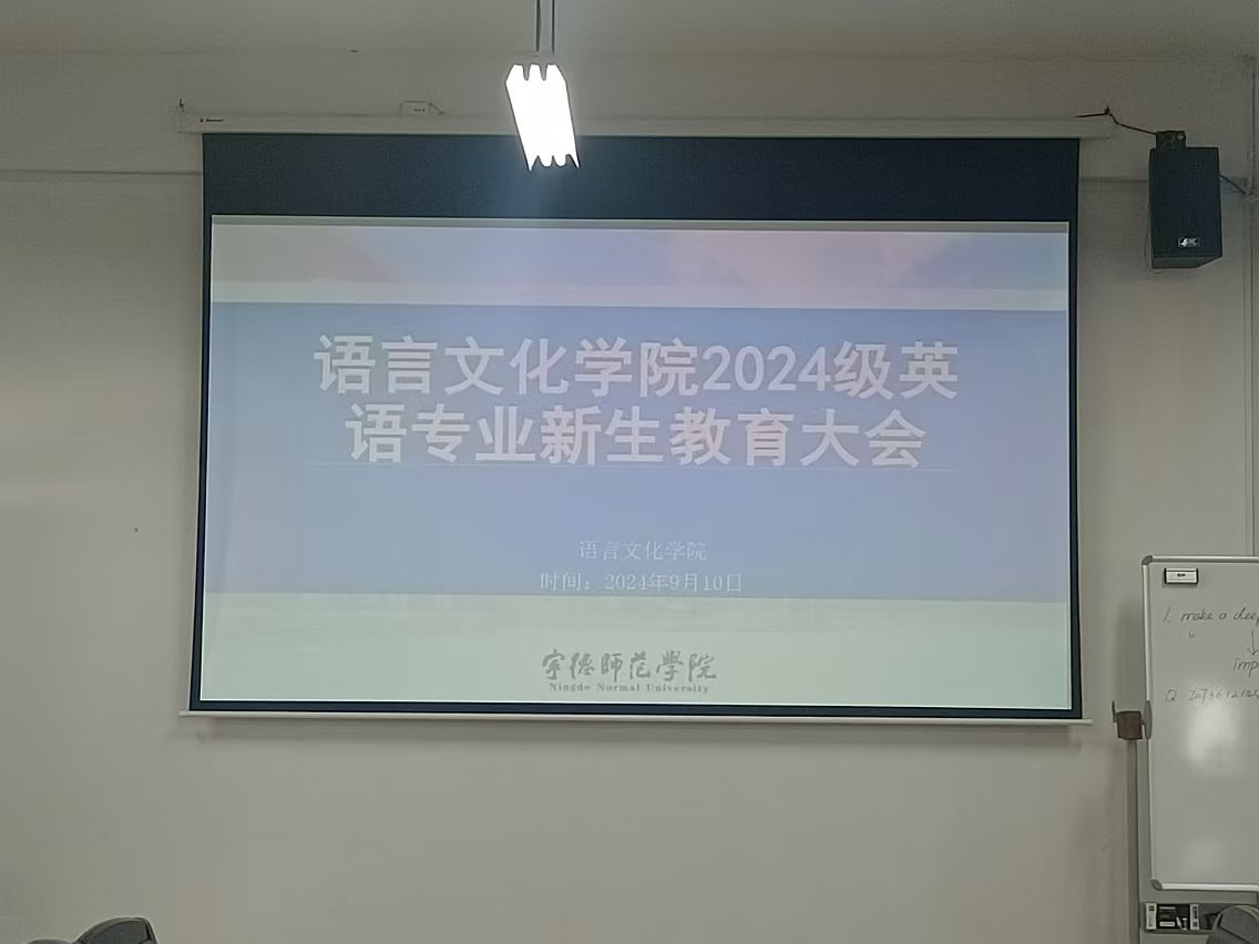 在大会上,游灼梅老师详尽地介绍了2024级人才培养方案,并分享了国奖获得者黄颖鑫学姐的杰出事迹,以此激励新生们努力奋斗。随后,2022级英语(师范)1班的潘婉容同学进行了宝贵的学习经验分享。最后,全体同学还共同观看了李传秋学姐关于考研经验的精彩分享会。