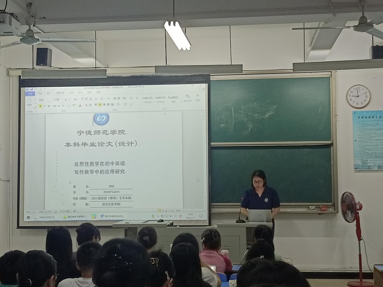 为确保2025届本科毕业论文工作的顺利开展,提高毕业生的论文撰写水平,并规范开题报告的撰写要求,2024年7月1日,公司英语专业在AA101举办了2025届英语专业毕业论文开题动员大会。讲座由系主任游灼梅老师主讲,2025届英语系全体毕业生及部分指导老师参加。