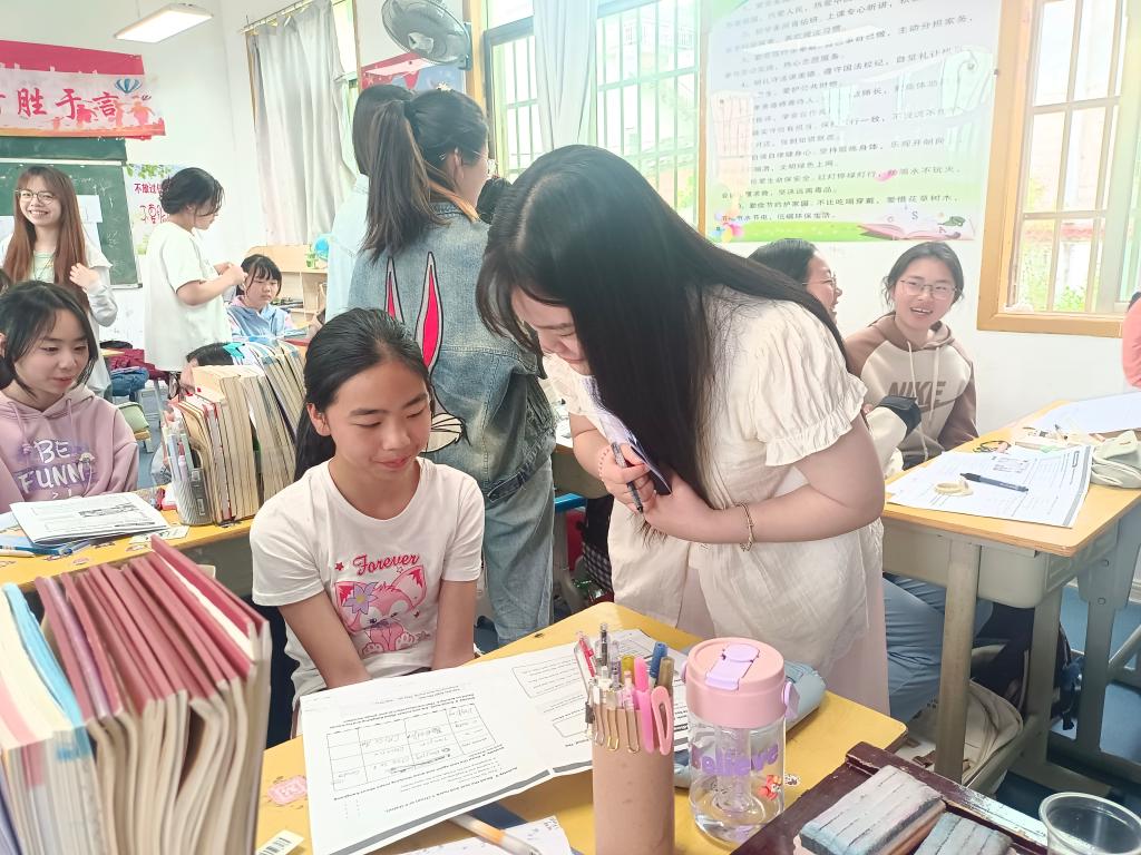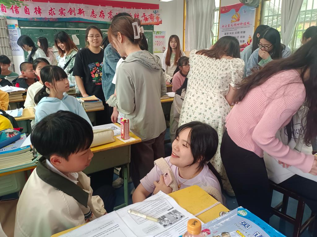 课堂上,蔡其访老师幽默风趣的教学方式深受同学们的喜欢。同学们认真观摩学习并记录整个教学过程,体会教学方法,感受活跃的课堂氛围。课后,同学们与七年(2)班的员工进行一对沟通交流,并分享英语学习的技巧。整个过程,员工积极配合,相处融洽,收获颇多。