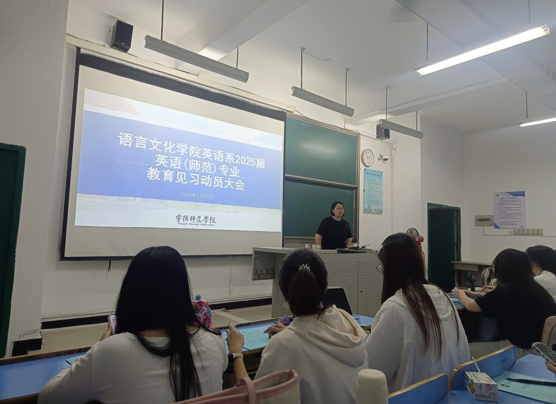 5月21日下午14:00-17:00,beats365亚洲版官网英语专业在求知楼AA101召开2021级英语(师范)专业及2022级英语(师范)专升本专业教育见习动员大会。英语系主任游灼梅、英语系副主任黄薇,教育见习指导老师,2021级英语(师范)专业及2022级英语(师范)专升本专业员工参加会议,会议由英语系主任游灼梅主持。