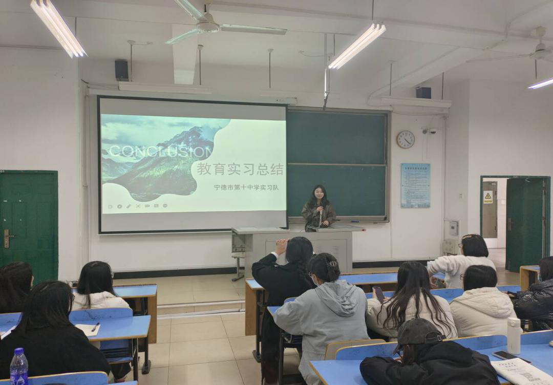 首先,在宁德市第十中学、蕉城中学、东侨经济开发区中学、东侨经济开发区中学、东侨经济开发区第二中学、蕉城区第一实验学校、宁德市第十一中学、高级中学七个实习点参与教育实习的2024届英语专业实习队代表分别从备课授课、听课评课、社团课与课后服务、班主任工作等方面进行了汇报总结;同时,对本次教育实习在课程安排、实习学校指导等方面提出了意见和建议。