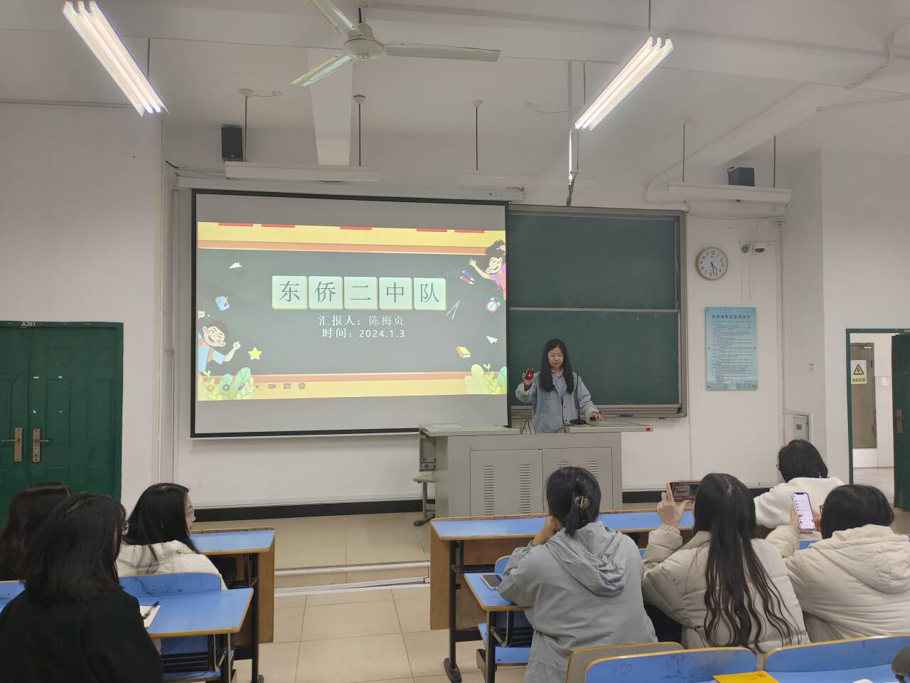 2024届英语专业师范生顺利完成了为期四个月的教育实习工作。为了帮助同学们更好地总结经验,进一步巩固实习岗位上的收获,2024年1月3日,学院在求知楼AA301顺利开展2024届英语专业教育实习汇报总结。英语系主任游灼梅老师、副主任黄薇老师、毕业班辅导员姜婷婷老师、林猤老师及全体2024届英语专业员工参加了总结大会。会议由游灼梅老师主持。