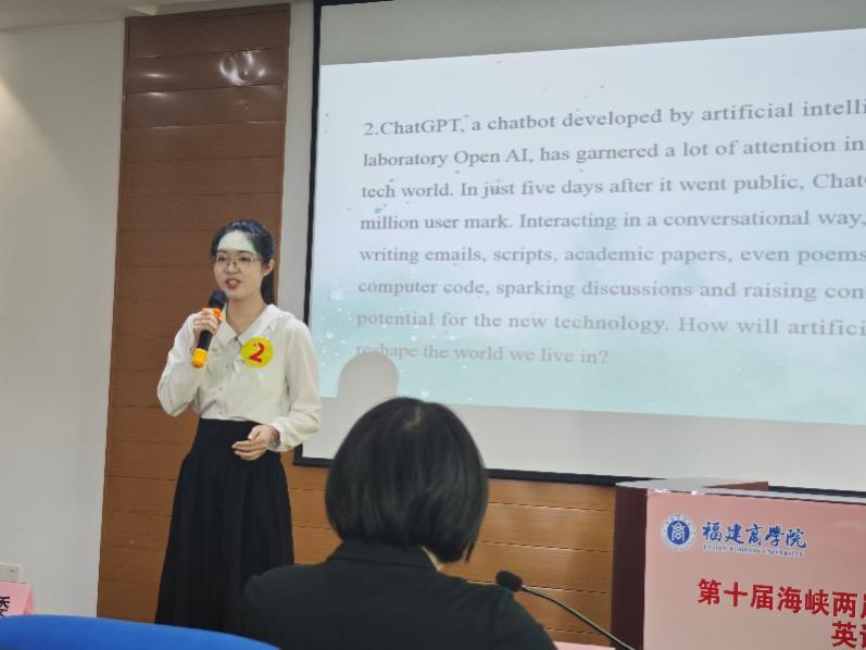 2023年10月21日, 由福建省教育厅、福建省人力资源和社会保障厅等联合主办的第十届海峡两岸暨港澳老员工职业技能大赛——英语口语竞赛在福建商学院(鼓楼校区)举行。本次大赛旨在进一步加强海峡两岸暨港澳老员工的交流与沟通,培养老员工的英语能力、国际视野、创新意识、家国情怀和未来精神,充分展示老员工风采,促进海峡两岸暨港澳英语教育的融合发展。